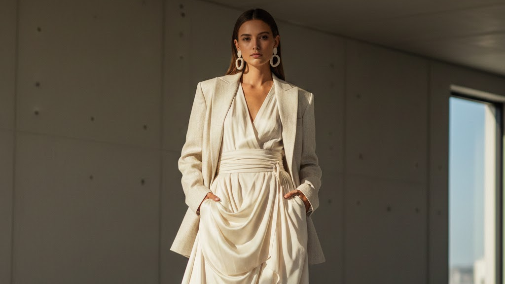 A Pantone elegeu o Cloud Dancer (11-4201) como a cor do ano. Este off-white não é apenas um branco sujo; ele simboliza clareza e um “respiro” visual. Em 2026, o look monocromático em tons de nuvem, osso e areia domina a alfaiataria de verão, transmitindo uma sofisticação despojada.